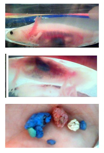 Nagyon nyilvánvalóan látszik, hogy kő okozz a problémát. Levegő nyelés esetén a has és belek fújódnának fel és az állat "lebegne" a vízfelszínen.