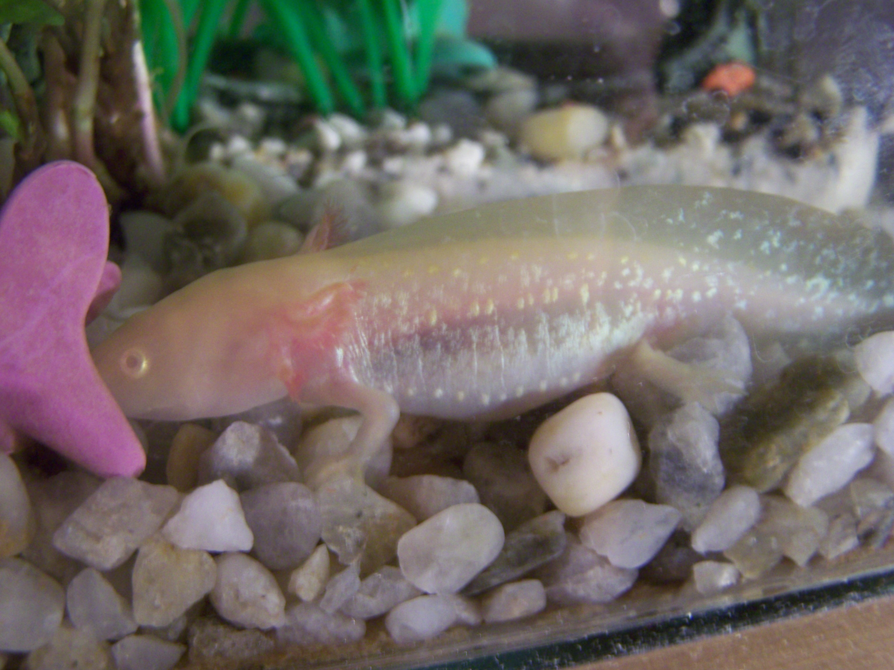 Sziasztok, a segítségeteket szeretnénk kérni. Újak vagyunk még az axolotl tartásban, és nem informálódtunk eleget róluk,mielőtt megvettük őket. Két axink van kb 2 hete, és sajnos a talajválasztásnál sikerült belenyúlnunk a lehető legrosszabba. 1-2mm-es fekete kavicsot tettünk az akváriumba és az egyik axi annyit nyelt belőle, hogy pár napja nagyon rosszul néz ki. Az elején nem volt vele semmi gond, úszkált egész nap, a kopoltyúja is szép volt, evett rendesen. De 3 napja nem evett semmit és szinte már egyáltalán nem mozog, teljesen le van gyengülve, a hátsó felét folyamatosan felfelé tartja mind a 2 lába fel van húzva. Látszik hogy fájdalmai vannak mert néha teljesen be van görnyedve és a farkát is behajlítva tartja. A testén foltok, hólyagok jelentek meg, a kopoltyúja teljesen elhalványult, és ma véres sebek lettek rajta. Elkülönítettük a másiktól egy kisebb üvegkádba. Rakok fel róla pár képet is, hátha az többet elmond róla: