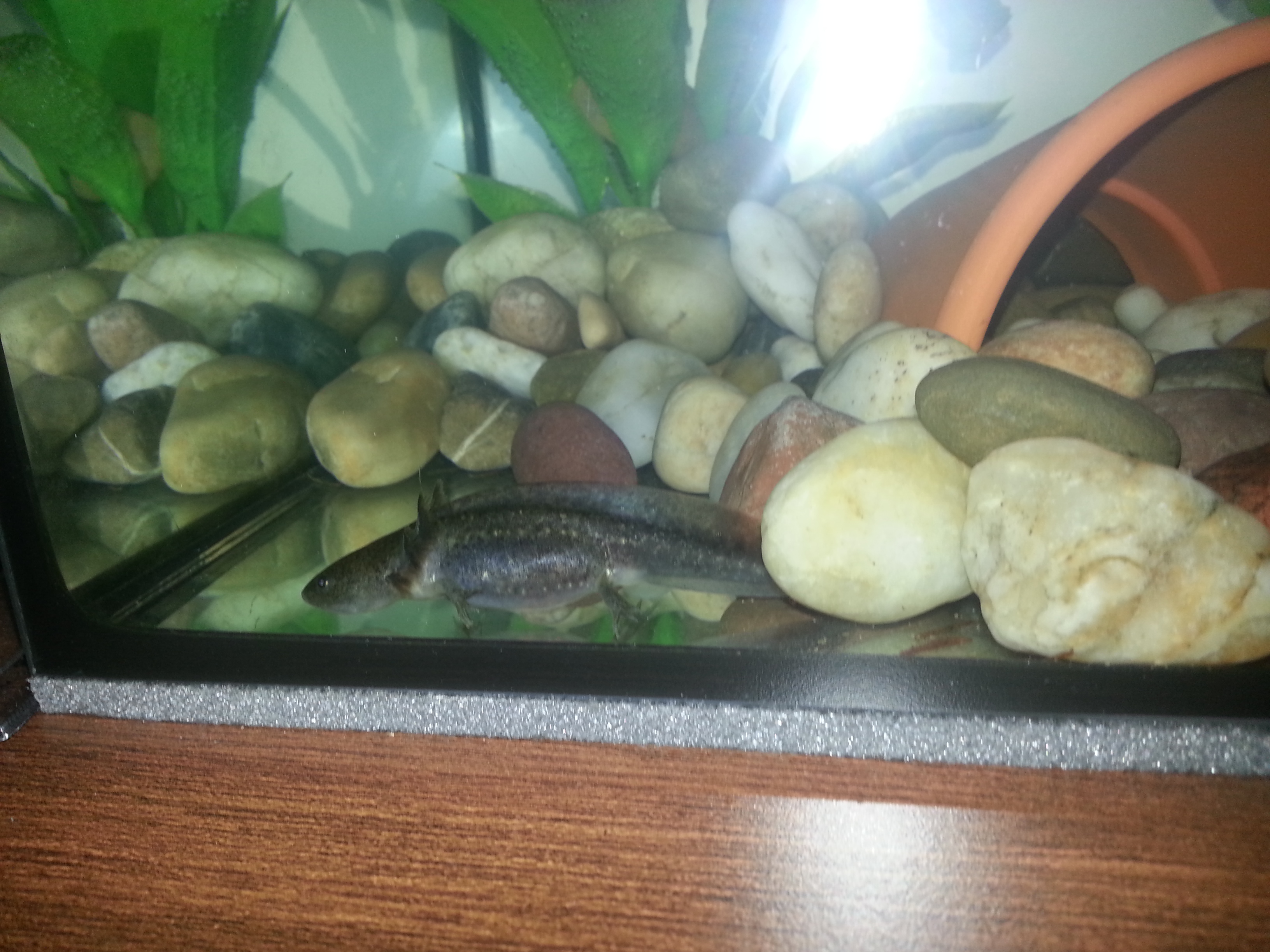 Nagyobbik axim valószínűleg lenyelt egy követ, mert látok a hasán, egy dudort és nemigazán megy fel levegőért... Azt viszont nem tudom, hogy tudta megenni a nagy követ, hisz még kicsi maga az axi is, nem tudom elképzelni, hogy tudta lenyelni