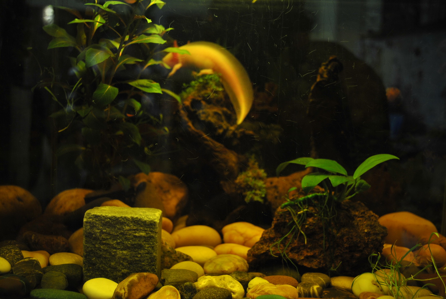 Üdv itt a fórumon! Nagyon aranyos az axid, szerintem se kövér, az enyémnek is van ekkora hasa :D. Az akvi is jól van berendezve, nagyon szép grt. hozzá.