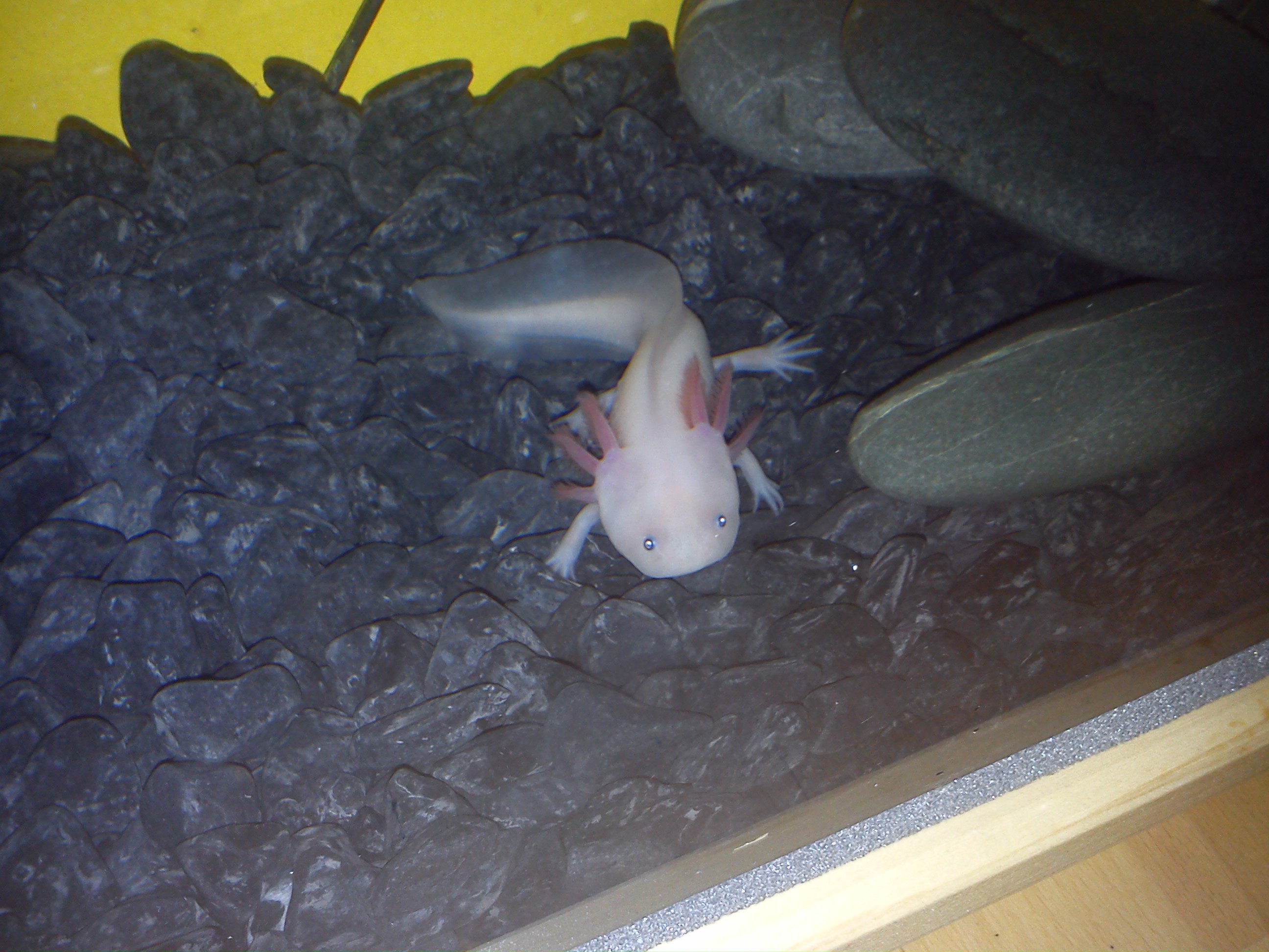 Nagyon szép az axid! Milyen aljzata van az akváriumnak, ezek kövek?