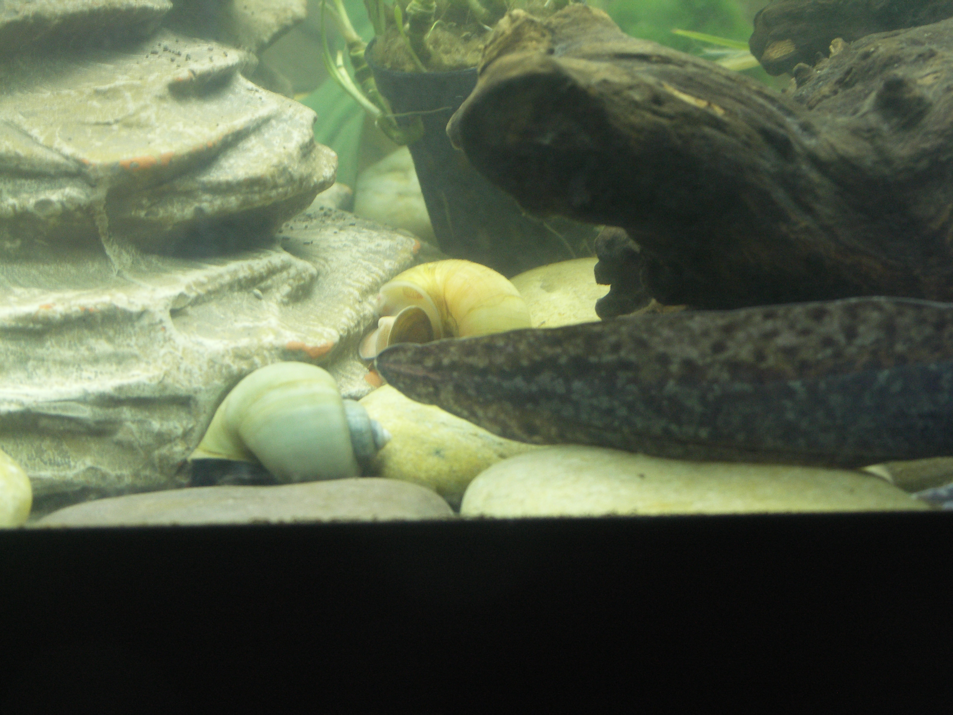 Kuro az axim pár napja nem eszik, eddig kétnaponta kapott pár halacskát. Tudom, hogy ez még nem olyan súlyos eddig, viszont aggódom a következők miatt. Azóta nem eszik, amióta egy nagyobb halat kapott tőlem.. bár ez nem volt eddig gond nála, de félek, hogy talán ez okozza a baját. A következő gond, hogy nagyon sokszor jön fel levegőt nyelni, illetve az előbb a hátán feküdt és nem mozdult, amitől nagyon megijedtem. :( Még sosem csinált ilyet. Viszont mióta visszafordítottam nem fordult ez elő megint szerencsére. Kuro egyébként kb 22 centis, és kb 2-3 centis kavicsok vannak alatta. A vize 23-24 fok körül van mostanában.