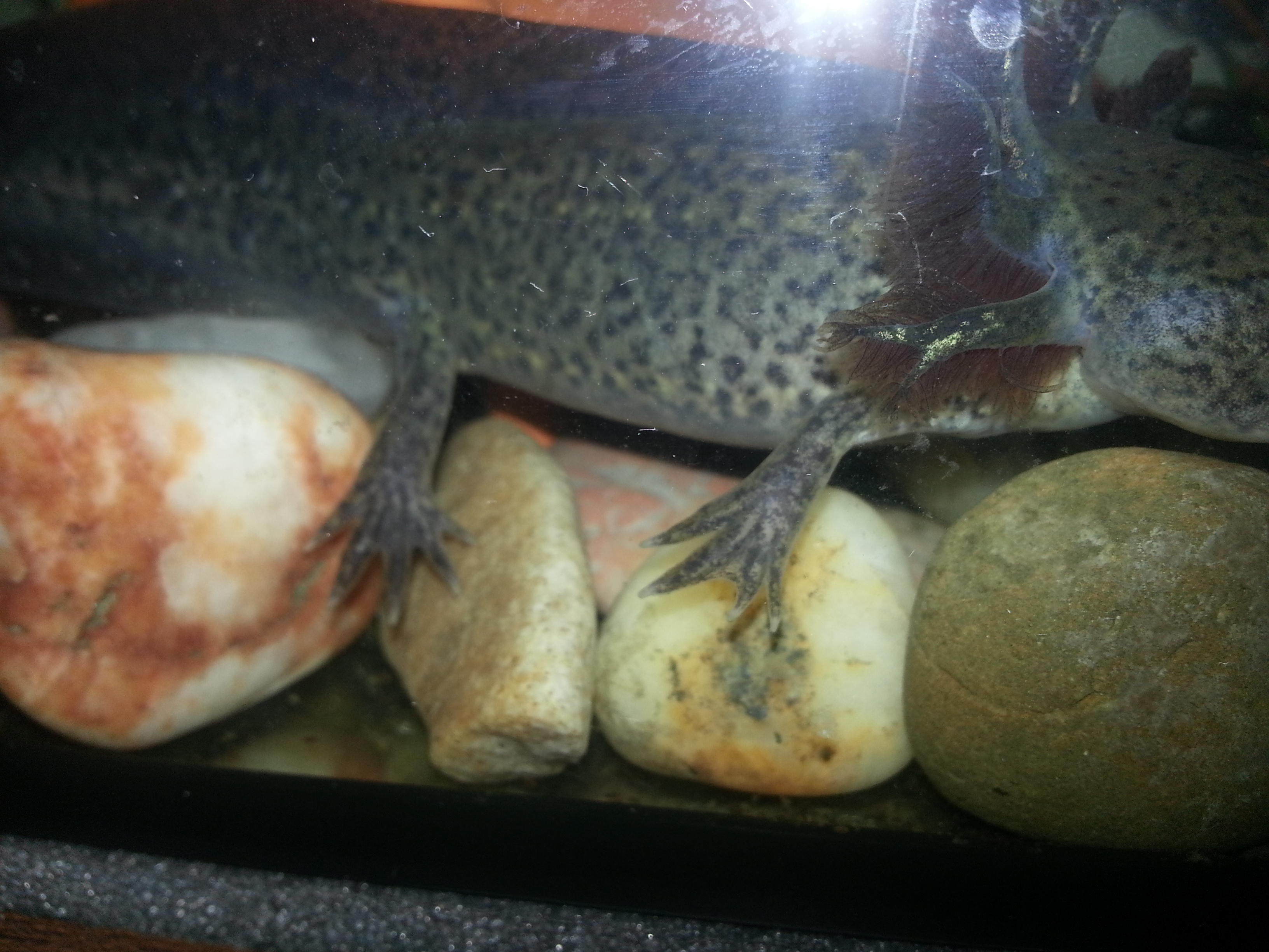 A lábujjról nem csináltunk képet, már a kocsiba vettük észre, hogy fura. Az egész ujja fel volt duzzadva, de hál isten leapadt. Nem fotóztam le, mert 1 nap alatt elmúlt. Sok állatunk van itthon, és próbálunk mindegyiknek a legjobbat adni. Ebbe a témában van még mit tanulni, és remélem a kopoltyú is visszanő:) Egyébként "jókedvű", úszkál és szépen eszik. Majd lefotózom őket. Dér és Köd lett a nevük:)