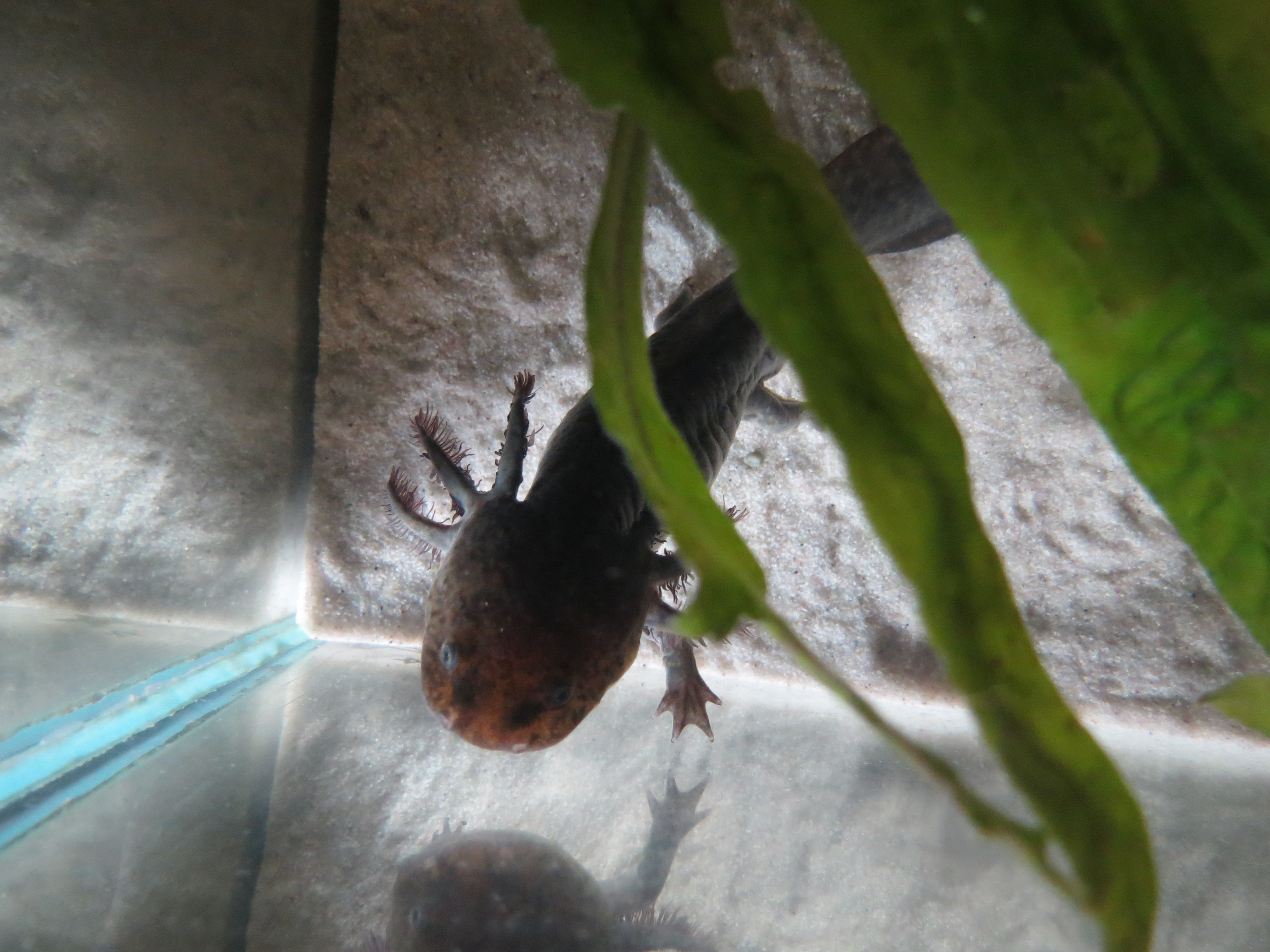 Nyaralni voltam, és axikámat a családra hagytam. Vasárnap jöttem haza, és az a látvány fogadott, hogy Axim ki van fehéredve, alig van kopoltyúja. Megmértem a vizét, és nagyon rossz értéket kaptam. Azonnal nekiálltam szétszedni az akváriumot. Mindent kifőztem, kitakarítottam. Az aljzat tele volt kaja maradványokkal, és még egy döglött halat is találtam.