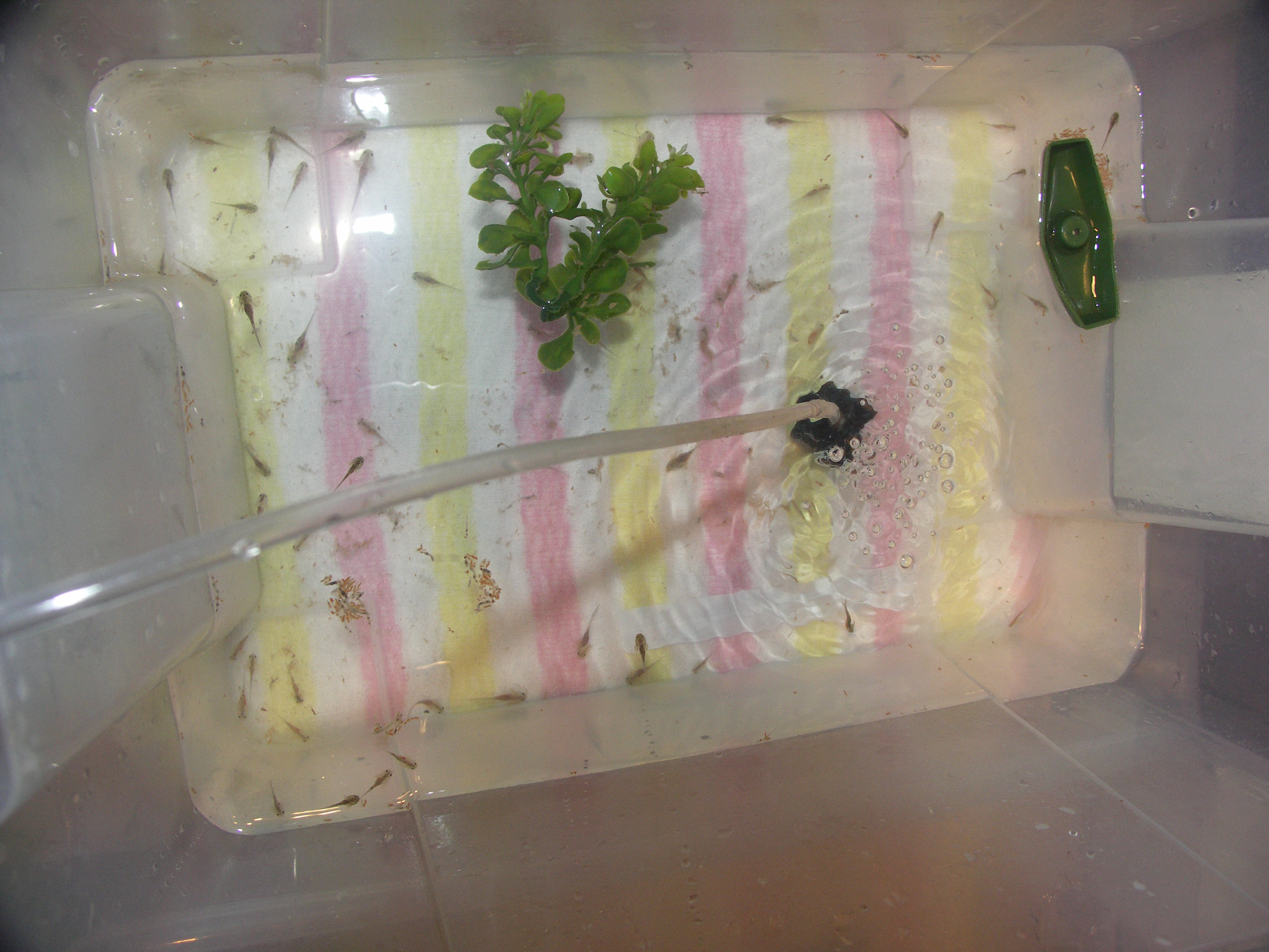 Végül 45-en maradtak, nagyon jó gyerekek nem rágják le egymás lábát, csak az egyiknek valaki az egyik oldalt lecsippentette a kopoltyúját ezen kívül semmi se történt. Van néhány akinek viszont elágazik a kopoltyúja, nagyon kis különlegesek, majd megpróbálom őket is lefotózni.
