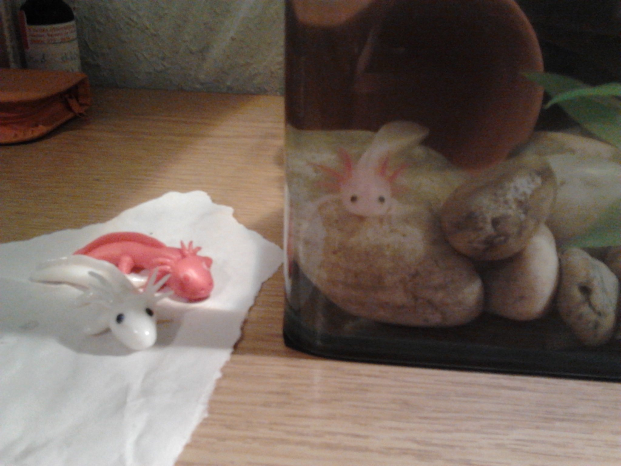 Lássuk, hogyan is kezdődött. Egyik barátnőm néhány éve mutatta nekem az axolotlot, mondván, neki kell egy ilyen "vidám kis fickó". :) Még szörnyülködtem is, mi ez a kis csúnyaság, mert nem vagyok hal párti. Nyálkásak, és nem csinálnak semmit. Aztán mostanság mikor jártam a plázában, benéztem az állatkereskedésbe is (jó szokás, mindig kötelező bemenni és körülnézni:)) és nini... ott egy axi. Leragadtam, nézegettem, majd egyre szimpatikusabb lett. Végre egy állat, ami teli pofával vigyorog rám..hát mi ez, ha nem édi? Irány haza, nézzünk utána. Végül rászántam magam, legyen, bevállalom, olyan aranyos, én pedig elképesztően állatbolond. Úgy is különleges állatot kerestem, de vadászgörényt nem engednek be az ősök, az afrikai fehérhasú törpesüni elképesztően drága, így döntöttem az axi mellett. Nála egyedibb, különlegesebb, furcsább állat talán nincs is...és itt kezdődött az sztorim.