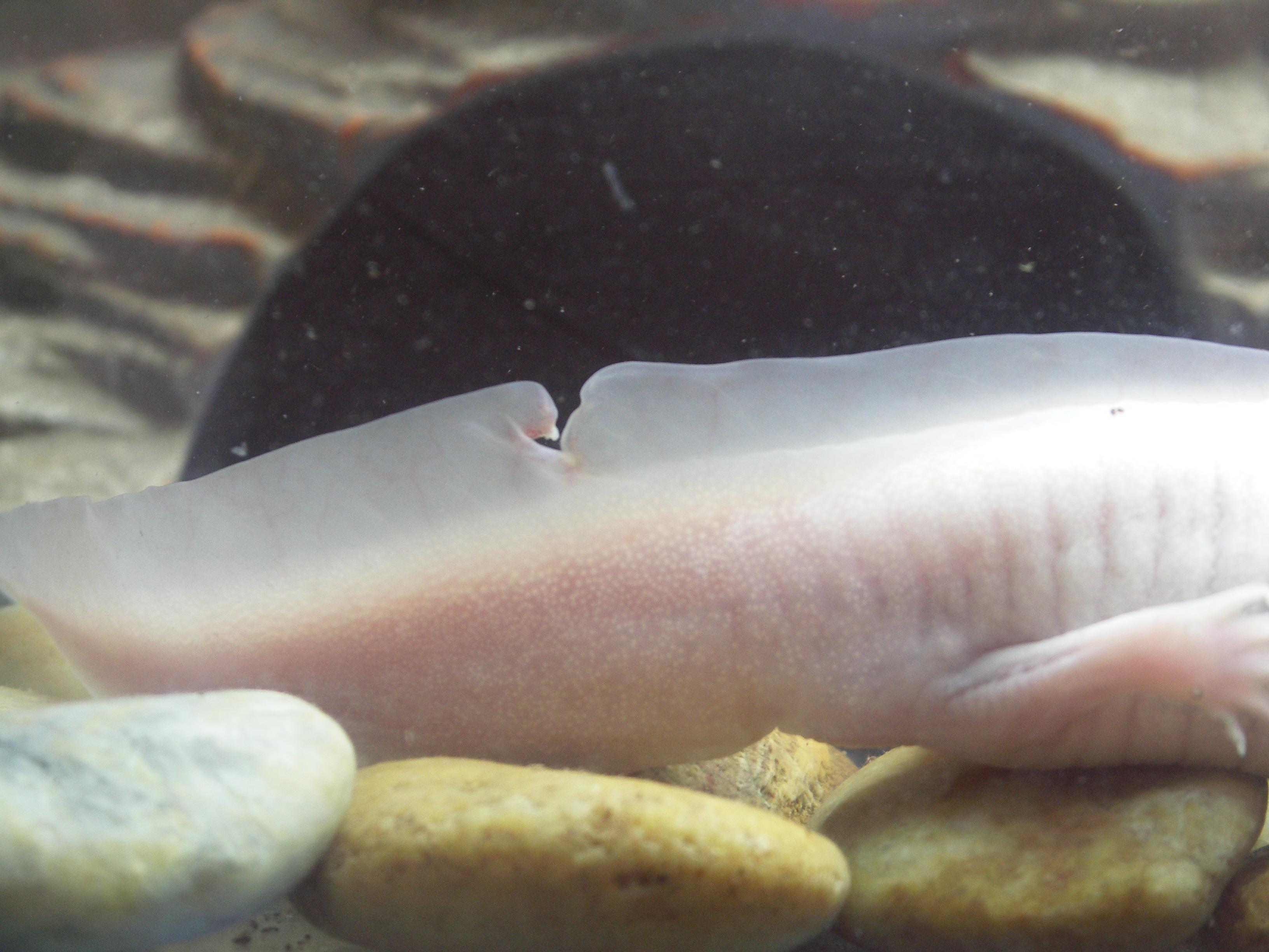 Maga az axi nincs túl jó állapotban az, hogy 1 évesen csak ekkora azt jelenti, hogy beltenyészetből származik, ezt megerősíti a befelé növő farokvég, ebből kifolyólag meglehet, hogy a lába a harapás előtt is kicsit kacska volt. A sérülés nem vészes, de figyelgessétek. Az axi eléggé vékony viszont. Nincs probléma a táplálkozásával? (Kopoltyúja aprócska)