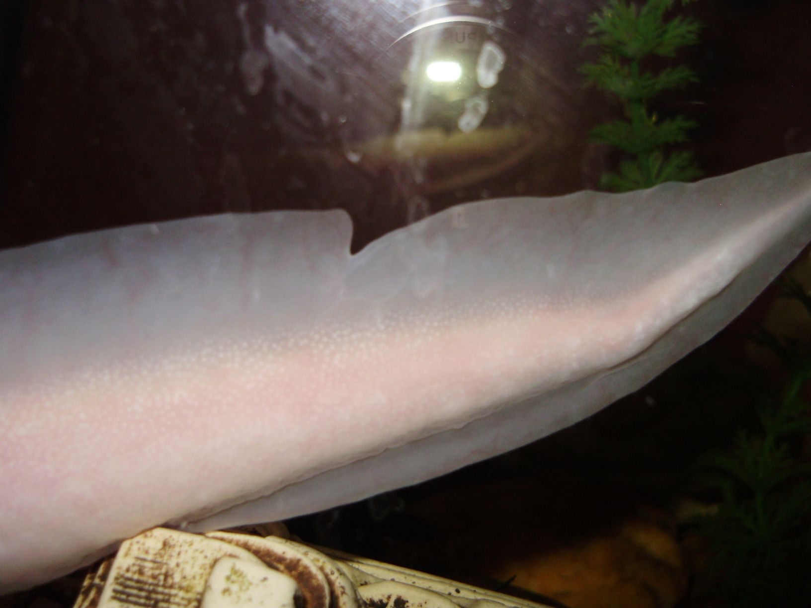 Nos mindenki lehet óvatos, meg hiheti, hogy vele nem történhet meg ilyesmi, aztán mégis. Általában nem veszem ki az axikat takarításkor, elég nagy az akvárium átterelem őket a másik végébe. Most is épp terelgettem őket, egyik kezembe a cső, másikkal lökdöstem őket. Aztán a vaksi visszafordult és belelökte a fehéret a csőbe, ami kicsit megkapta megszakadt az úszóhártyája. Komolyabb baja nem lett, nagy axik lábát véletlenül már bekapta régebben, szerencsére semmi bajuk nem lett. (Néha békákat kap meg vagy át is mennek, semmi bajuk nincs tőle) Pár napot lent hűsölt, aztán visszaraktam, de csak sikerült továbbszakítani és most már sokkal nagyobb és rondább, mint volt...kíváncsi leszek mennyi idő lesz mire összeheged. Most ismét lent van és hűsöl.