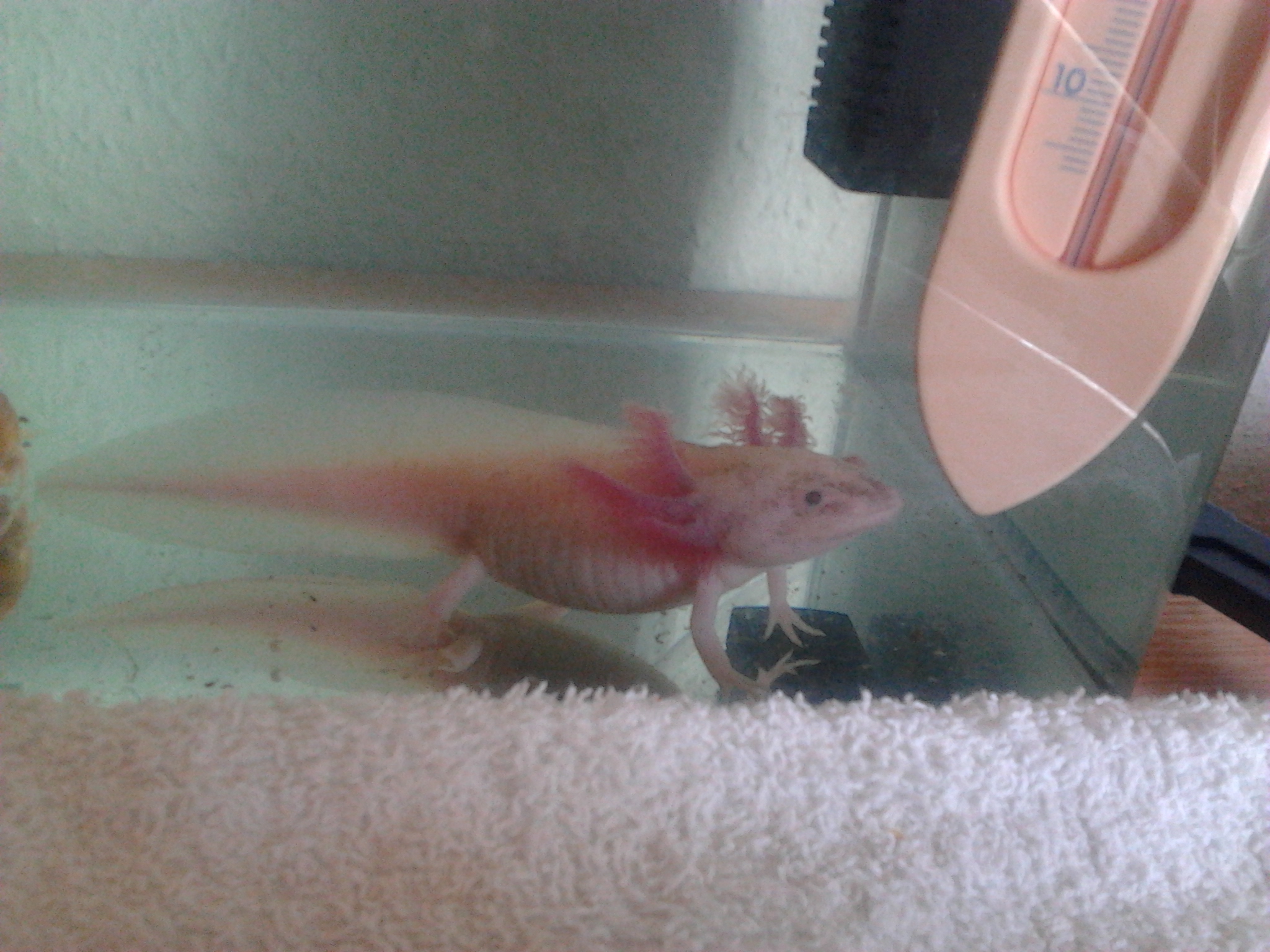 Lássuk, hogyan is kezdődött. Egyik barátnőm néhány éve mutatta nekem az axolotlot, mondván, neki kell egy ilyen "vidám kis fickó". :) Még szörnyülködtem is, mi ez a kis csúnyaság, mert nem vagyok hal párti. Nyálkásak, és nem csinálnak semmit. Aztán mostanság mikor jártam a plázában, benéztem az állatkereskedésbe is (jó szokás, mindig kötelező bemenni és körülnézni:)) és nini... ott egy axi. Leragadtam, nézegettem, majd egyre szimpatikusabb lett. Végre egy állat, ami teli pofával vigyorog rám..hát mi ez, ha nem édi? Irány haza, nézzünk utána. Végül rászántam magam, legyen, bevállalom, olyan aranyos, én pedig elképesztően állatbolond. Úgy is különleges állatot kerestem, de vadászgörényt nem engednek be az ősök, az afrikai fehérhasú törpesüni elképesztően drága, így döntöttem az axi mellett. Nála egyedibb, különlegesebb, furcsább állat talán nincs is...és itt kezdődött az sztorim.