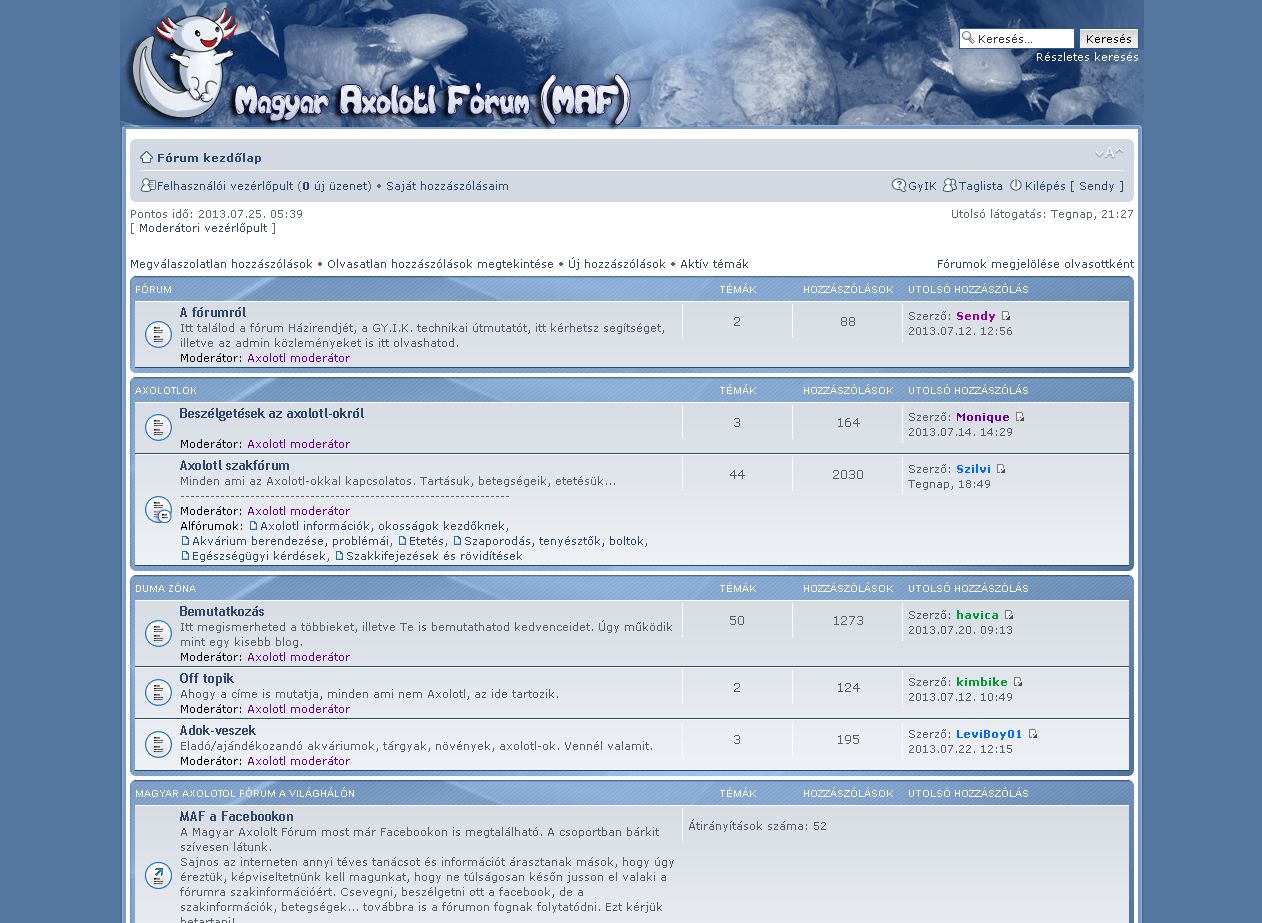 Az átrendezés és információfeltöltés el fog tartani akár hetekig is, ezért türelmeteket kérjük, ha valamit éppen nem találtok, vagy már nem ott lesz, ha problémátok van akkor azt itt http://axolotl.hu/viewtopic.php?f=3&t=4 jelezhetitek, és segítünk.