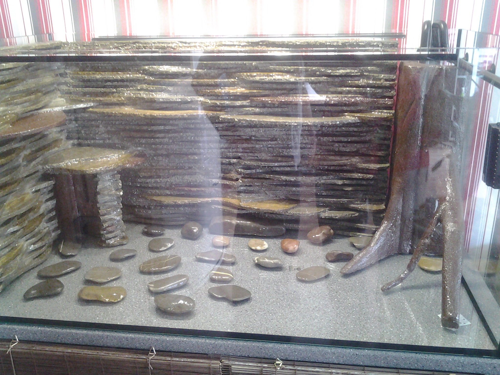 Neten körbenéztünk, hogy milyen fajta hátterek vannak, a néhány egyedi ötleten kívül mindenki hasonlót készít. Végül megszületett az elképzelés: nagy tenyérnyi kerekített kavicsokat fogunk csinálni, illetve a szűrő és hűtés majd egy fatörzs mögé lesz elrejtve.