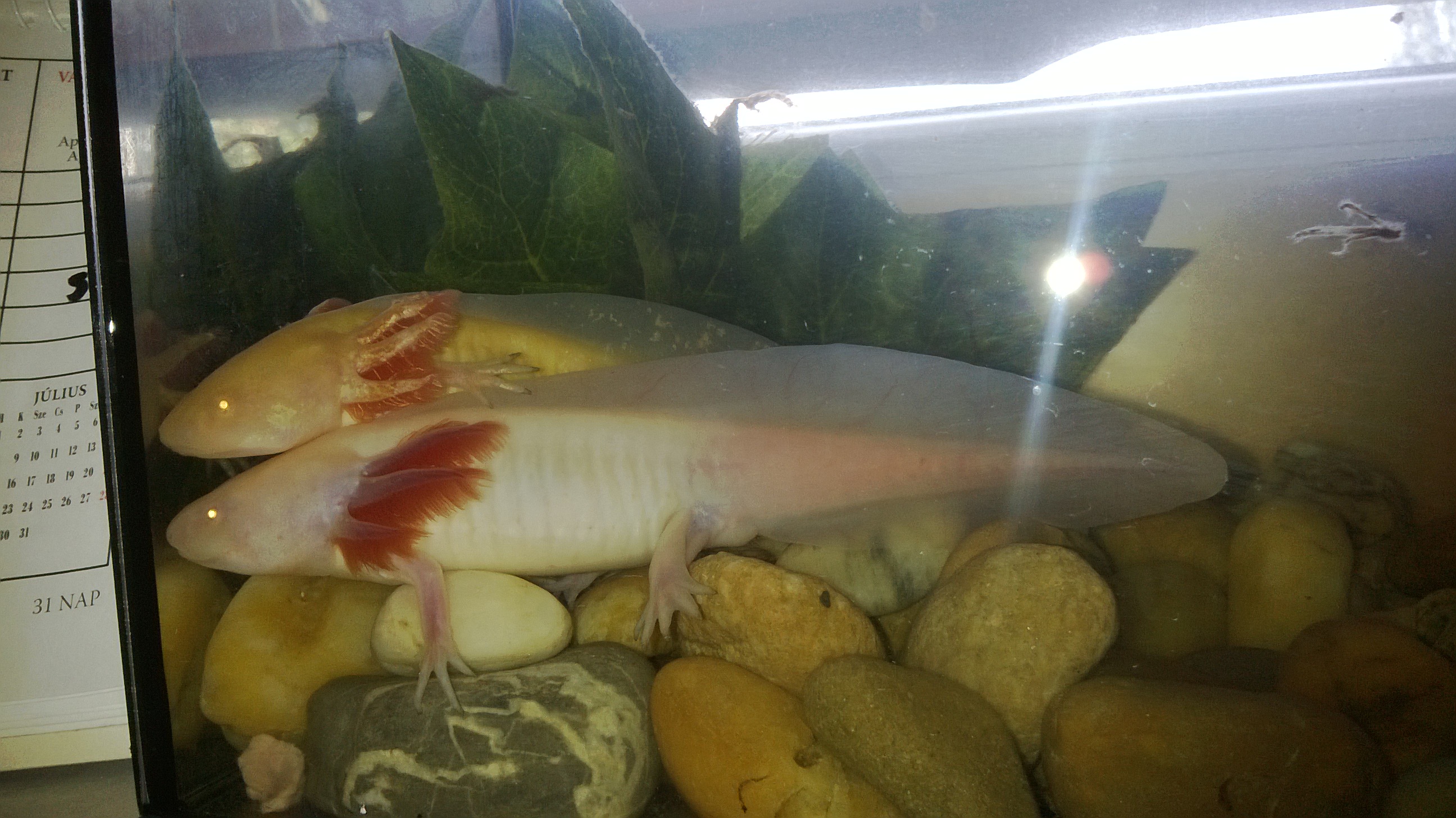 Barátnőmmel 5 axolotot tartunk, 3 barátnőmnél 2 nálam. Március 27.én kerültek hozzánk nagyon picik voltak..