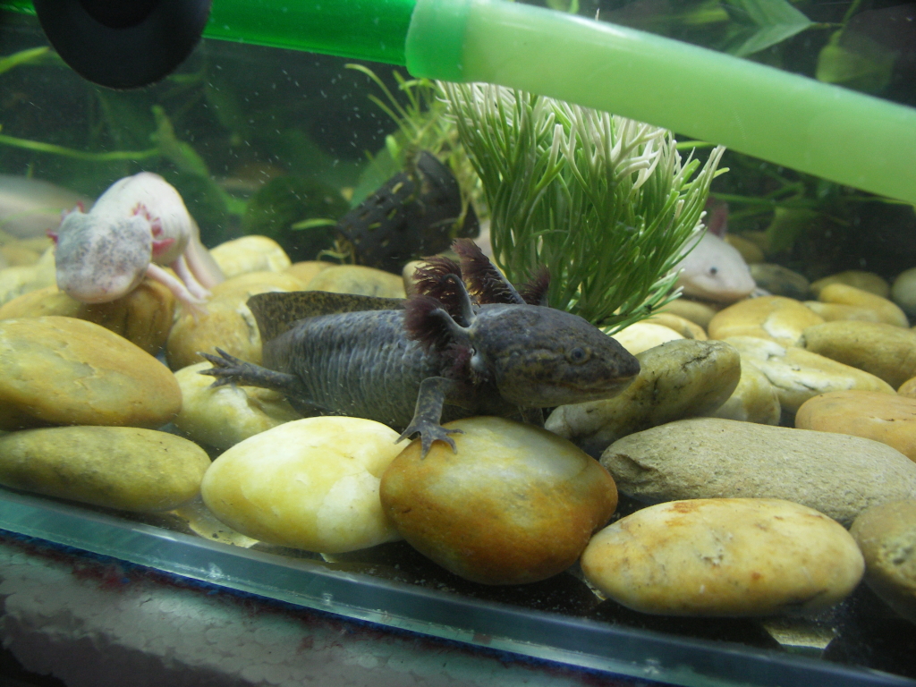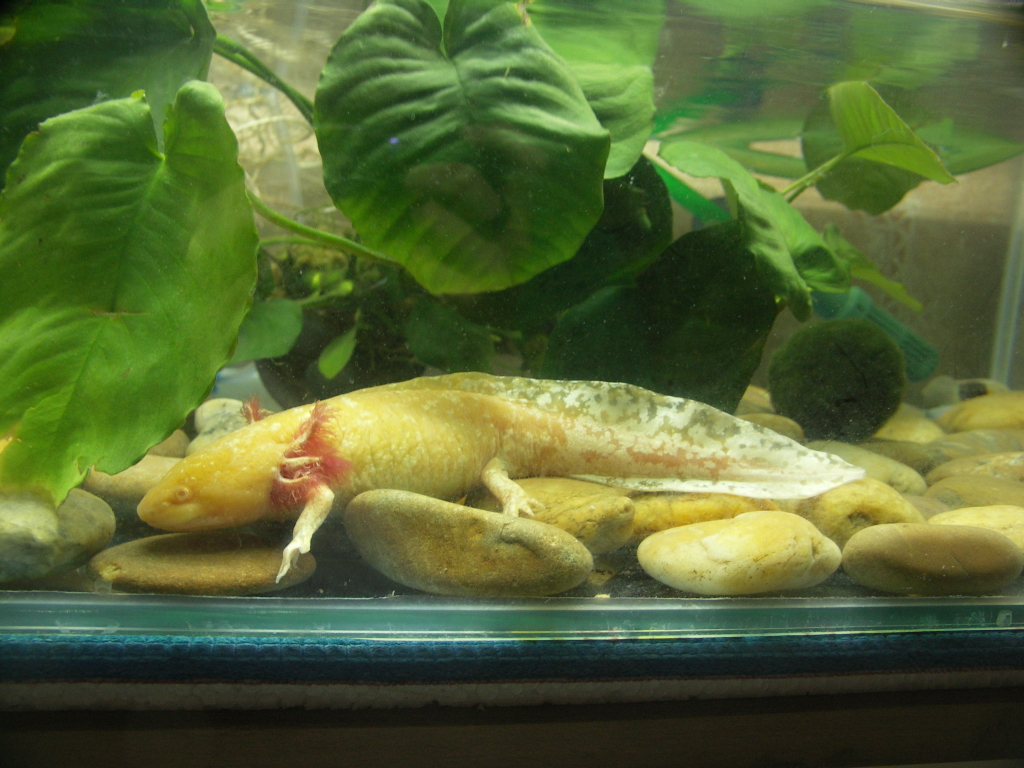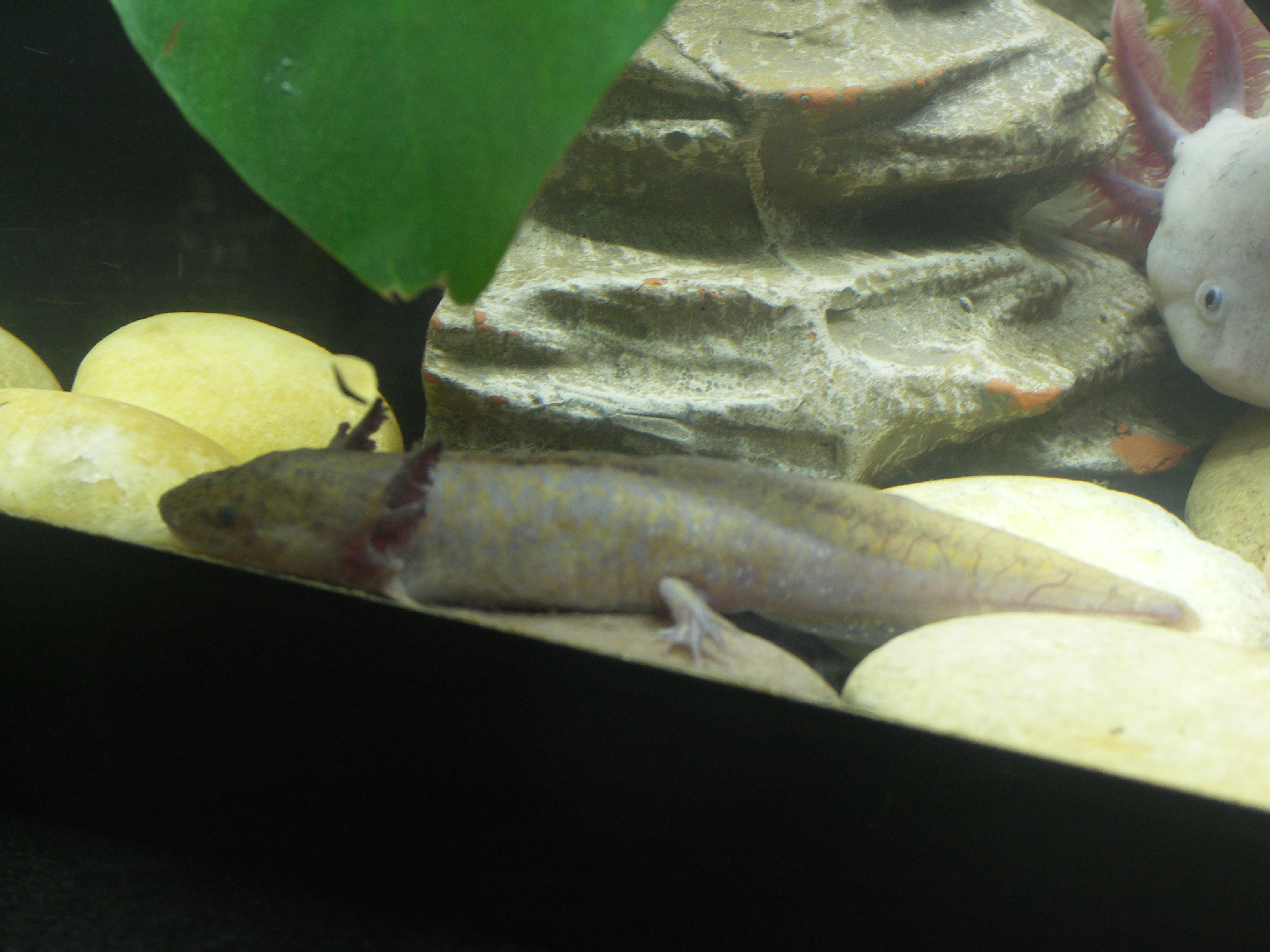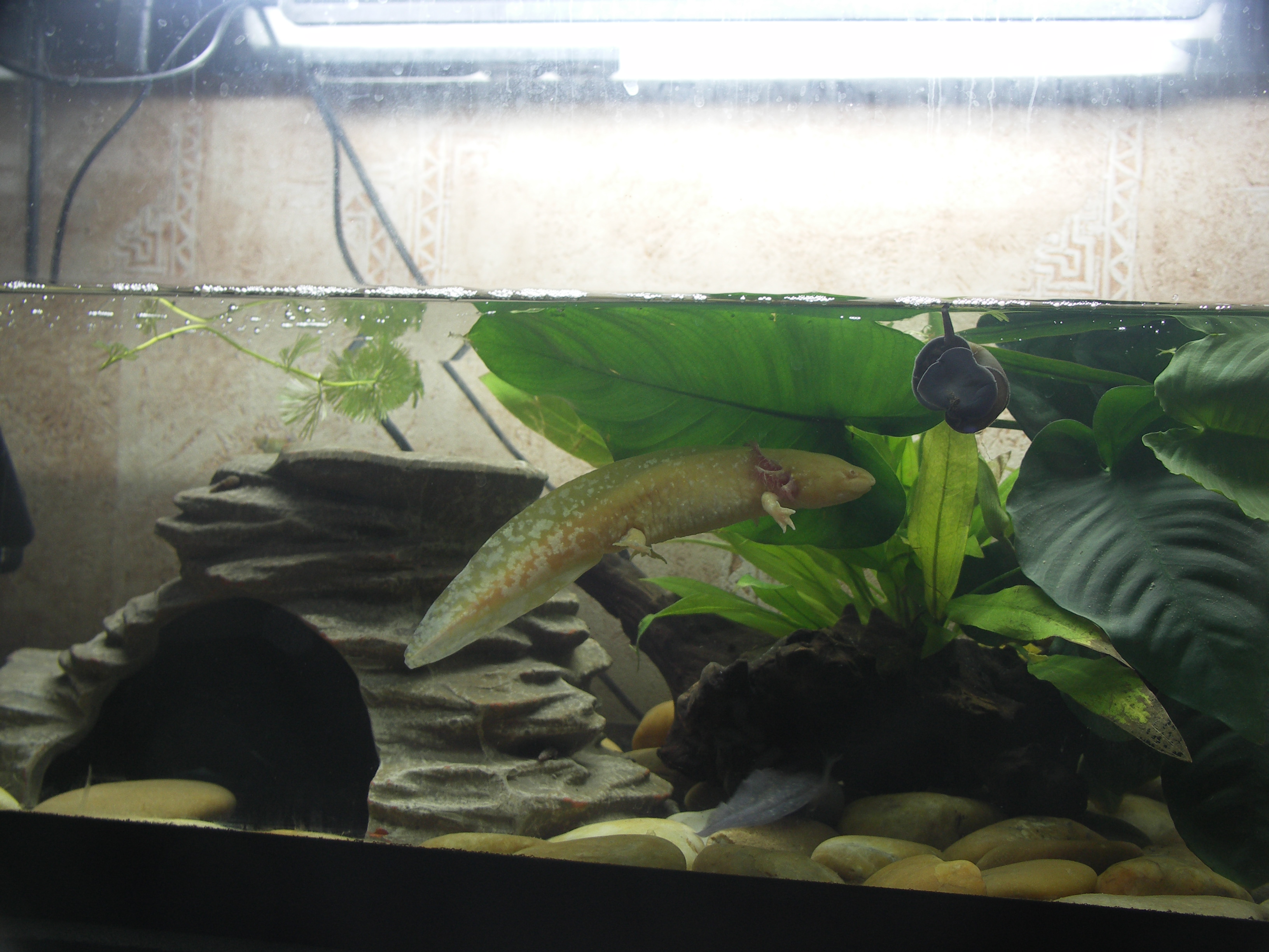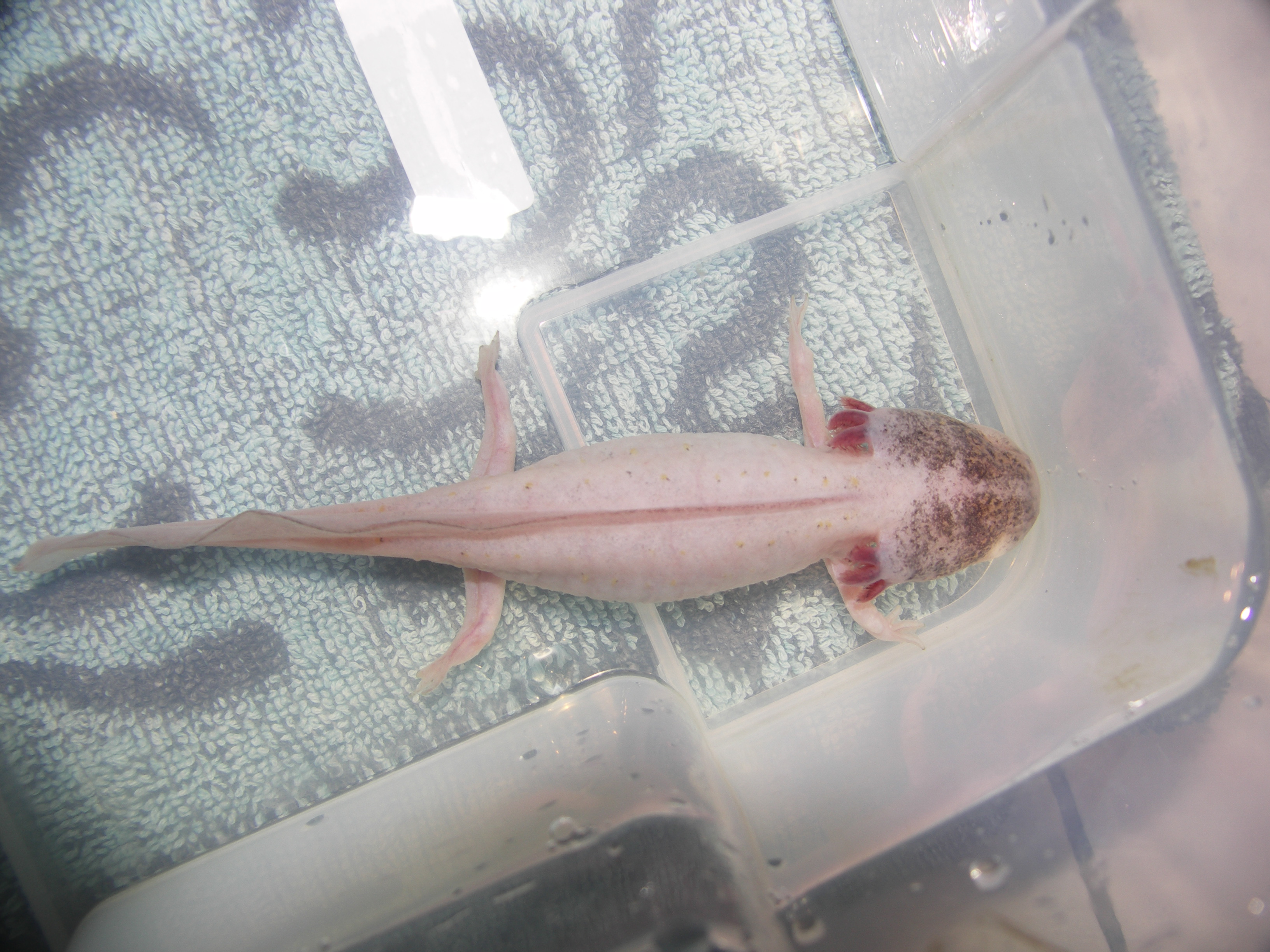Maya írta:A kis szemtelen lányom nagyon szépen gyógyulgat. Nagyon jó gyerek, minden nap hajlandó enni, kissé kritikusan áll a csipeszhez nagyon furán tud belőle enni, de ha leteszem neki valahova megtalálja és mint egy porszívó felszippangatja. Az első héten még nem, de az elmúlt két hétben mindent megevett akármit adtam neki, élő-fagyasztott, evett tücsköt is, meglepődtem mert a májat nem igazán szereti, pedig nálam azért a többi megvan halva. A kopoltyúszőrei kezdenek visszajönni a kopoltyúja vastagabb lett, élénkebb színű, kicsit hosszabb is, de láthatóan javul. Sőt nem tudom miért de néhány dudor az oldalán kisebb lett, lehet hogy később a lábairól is eltűnnek majd a dudorok. Megszokhattátok a végére pár kép :).