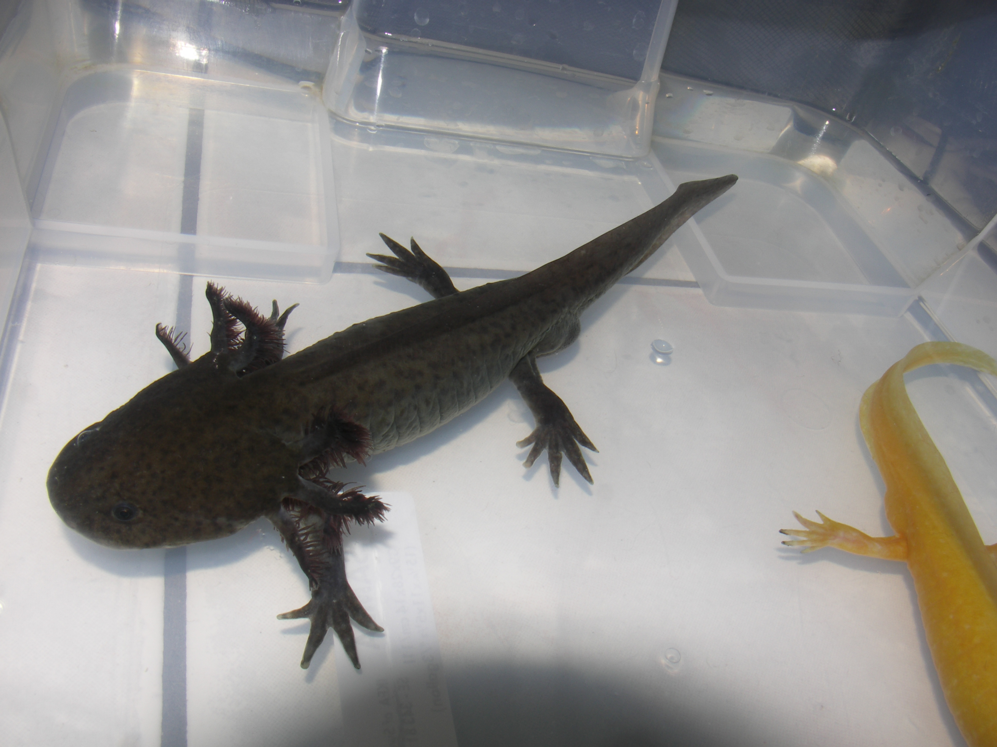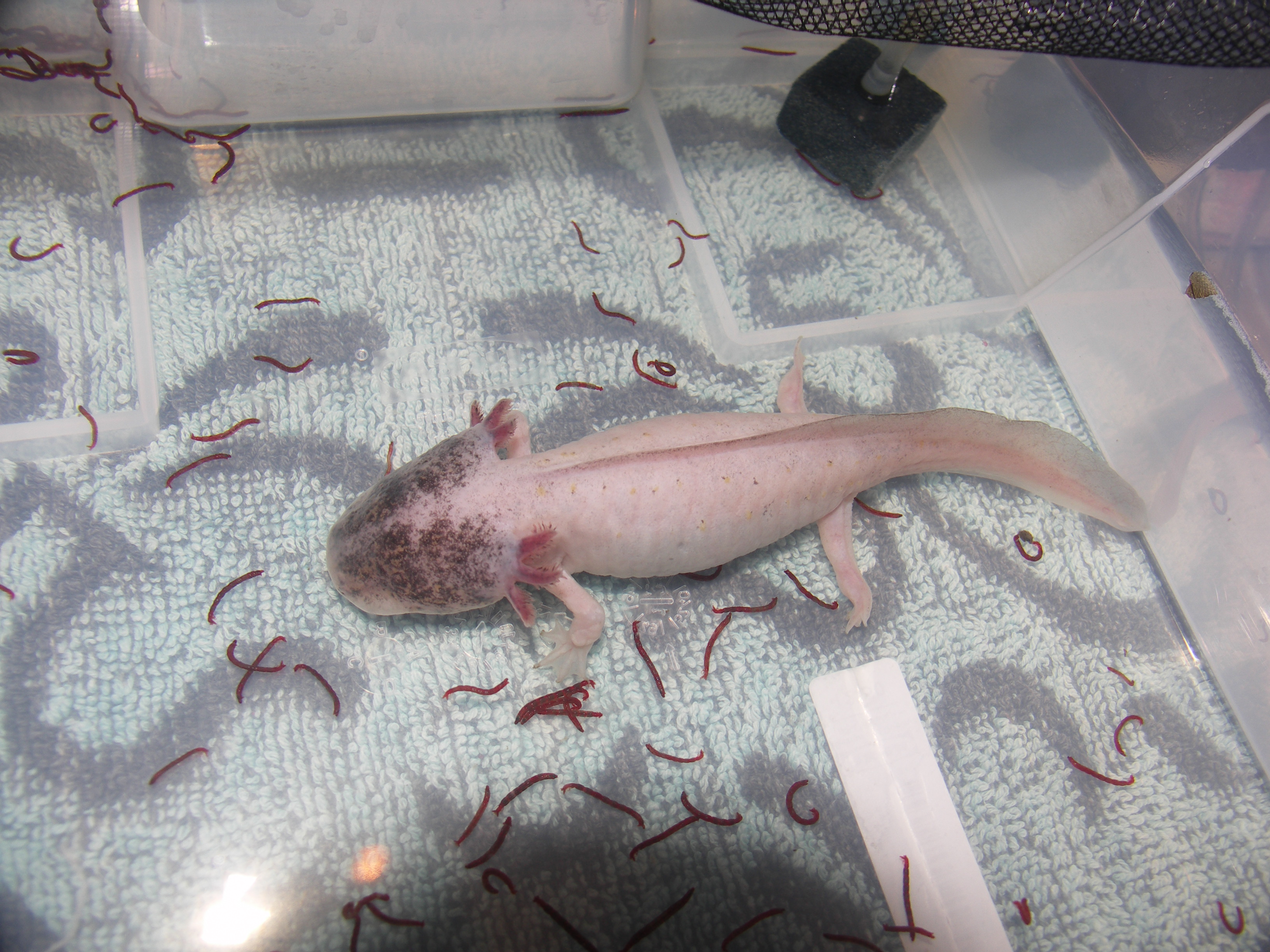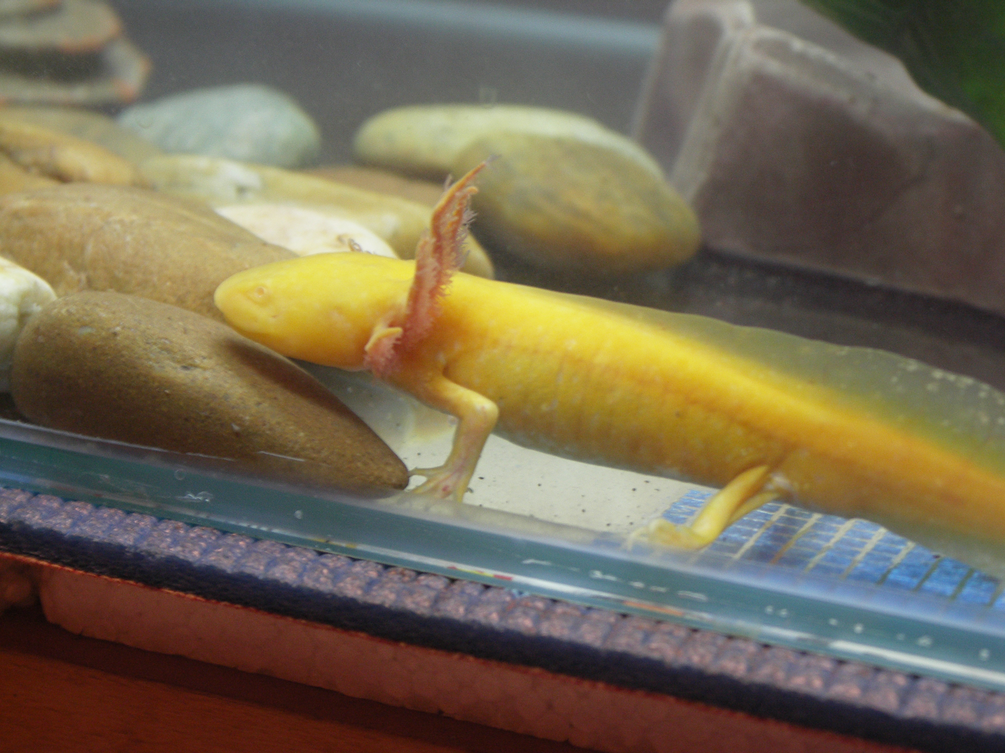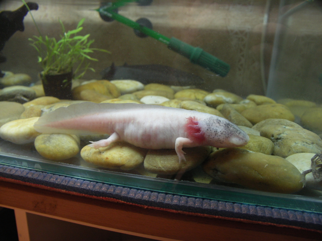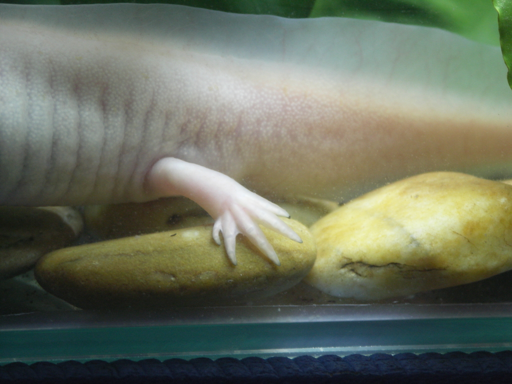 Maya írta:A kis szemtelen lányom nagyon szépen gyógyulgat. Nagyon jó gyerek, minden nap hajlandó enni, kissé kritikusan áll a csipeszhez nagyon furán tud belőle enni, de ha leteszem neki valahova megtalálja és mint egy porszívó felszippangatja. Az első héten még nem, de az elmúlt két hétben mindent megevett akármit adtam neki, élő-fagyasztott, evett tücsköt is, meglepődtem mert a májat nem igazán szereti, pedig nálam azért a többi megvan halva. A kopoltyúszőrei kezdenek visszajönni a kopoltyúja vastagabb lett, élénkebb színű, kicsit hosszabb is, de láthatóan javul. Sőt nem tudom miért de néhány dudor az oldalán kisebb lett, lehet hogy később a lábairól is eltűnnek majd a dudorok. Megszokhattátok a végére pár kép :).