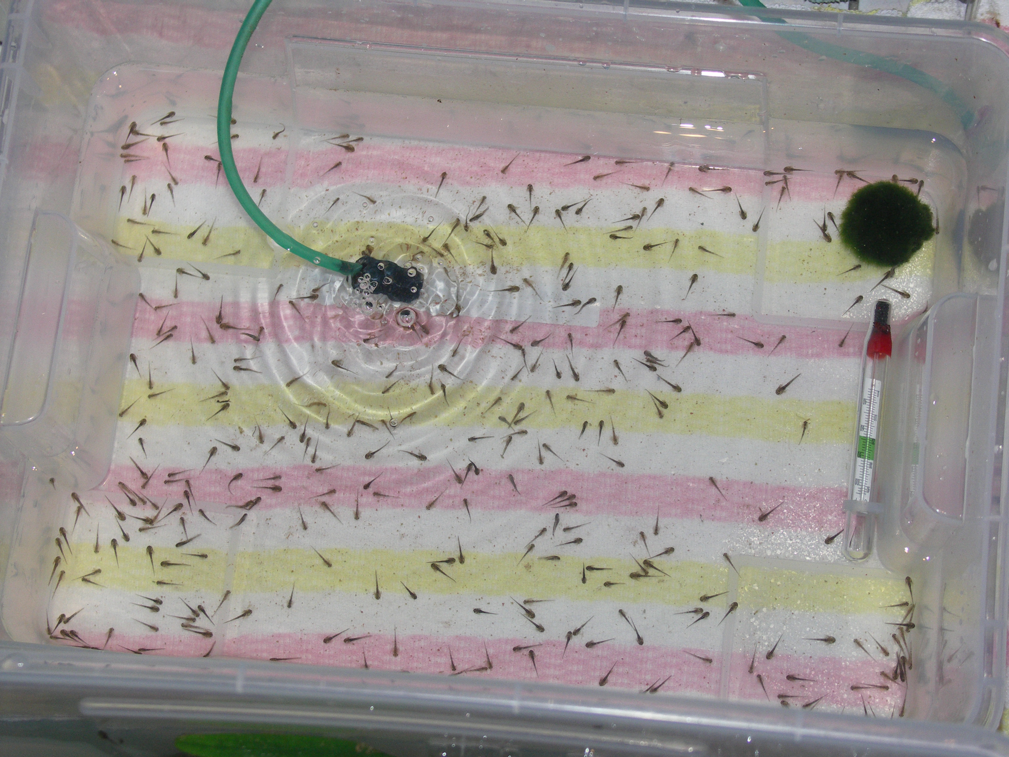 Végül 45-en maradtak, nagyon jó gyerekek nem rágják le egymás lábát, csak az egyiknek valaki az egyik oldalt lecsippentette a kopoltyúját ezen kívül semmi se történt. Van néhány akinek viszont elágazik a kopoltyúja, nagyon kis különlegesek, majd megpróbálom őket is lefotózni.