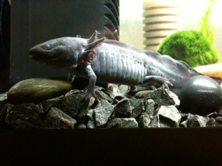 Én a nyáron kezdtem el foglalkozni az axikkal, egy állatorvosnál figyeltem fel rájuk. Rögtön megtetszettek. Sokat gondolkodtam, hogy kell-e nekem ilyen állatka, hiszen mindenféle vizi dologtól írtózom, nem nagyon tudom megfogni sem a halat, sem a hasonló élőlényeket. Kivételt képeznek a békák, és most már az axolotlok. Szóval gondolkodtam és végül arra jutottam, hogy szeretnék. Ígéretet kaptam, hogy születésnapomra ez lesz az ajándék. Így is lett. Sajnálatos módon Axel (így hívták az első axim) két nap után elpusztult, azt nem tudom, hogy miért, valószínűleg az állatkereskedésben, ahonnan hozták, nagyon nem volt jó helyen, beteg volt. Nagyon megsirattam, szomorú voltam és úgy éreztem, hogy béna vagyok én ehhez. De aztán visszamentünk az állatkerekedésbe szólni, hogy gond volt az axival és elpusztult. A csaj, aki ott volt kiröhögött bennünket, majd lazán közölte, hogy hát akkor adnak egyet ingyen. Hát köszi szépen, gondolhatjátok, hogy nem kellett. Egy barátomtól kaptam a mostanit, Bubi lett a neve, fekete és nagyon szép. A szűrőkkel megszenvedtem, mert az előző kereskedésből nem adtak hozzá mindent, ami kellett volna, és én nem értek hozzá. Kerestem egy másik kereskedést, ott már nagyon normálisak voltak, mindenről kaptam felvilágosítást, megvettem, ami még kellett az akváriumba, berendeztem és jelentem Bubi most már nagyon jól érzi magát, legalább is én úgy látom.